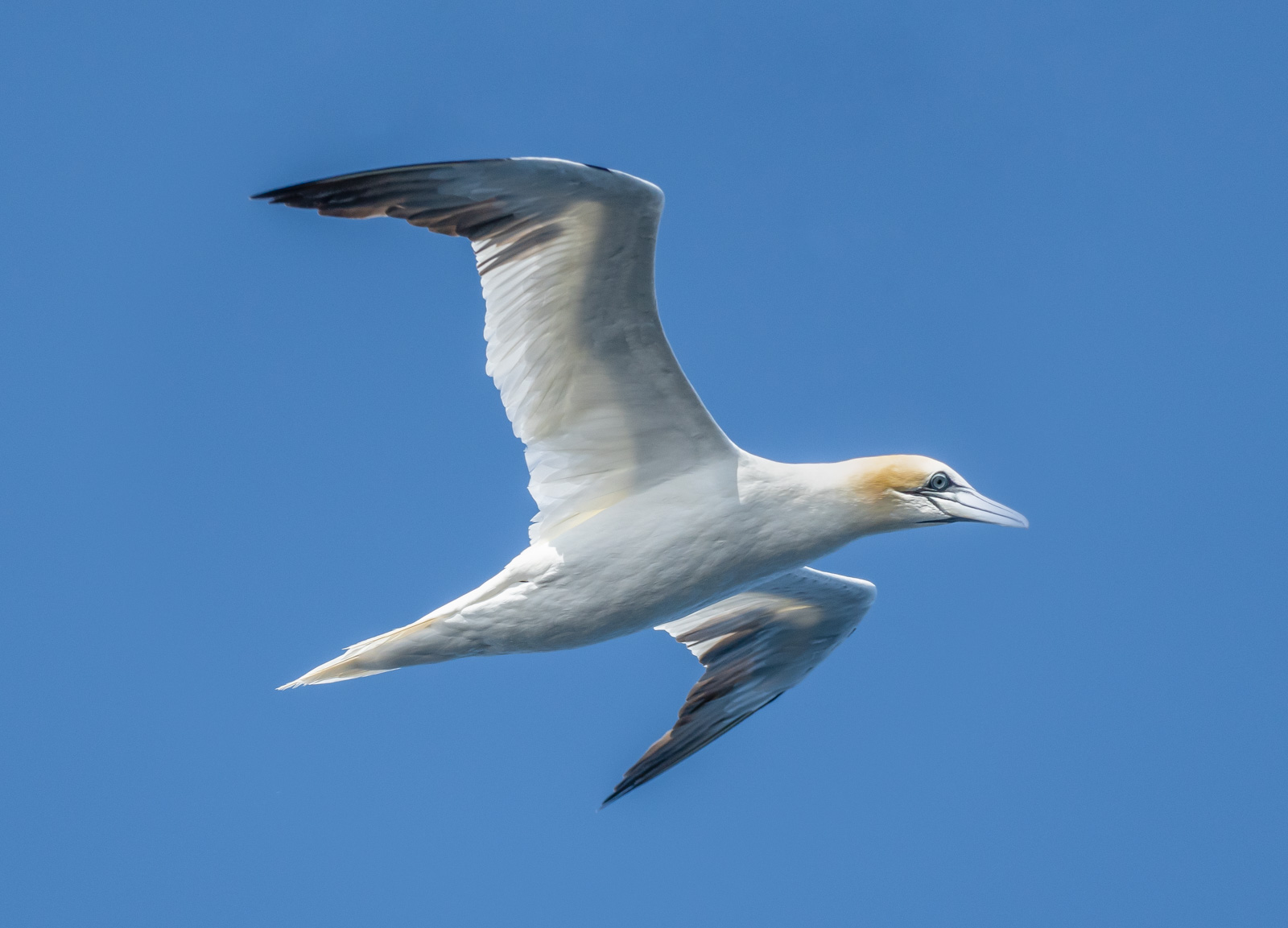 ... på fisketuren i dag. Langt ute på Hestbakkan møtte vi nemlig på havsuler. De var flere. Etter hva jeg kunne se var det 7-8 stykk som stupte etter fisk. Trolig var det tobis eller lignende som havsula jaktet på. Fotoapparatet var selvsagt med så det ble en del bilder av havsula der den fløy over båten på jakt etter småfisk.